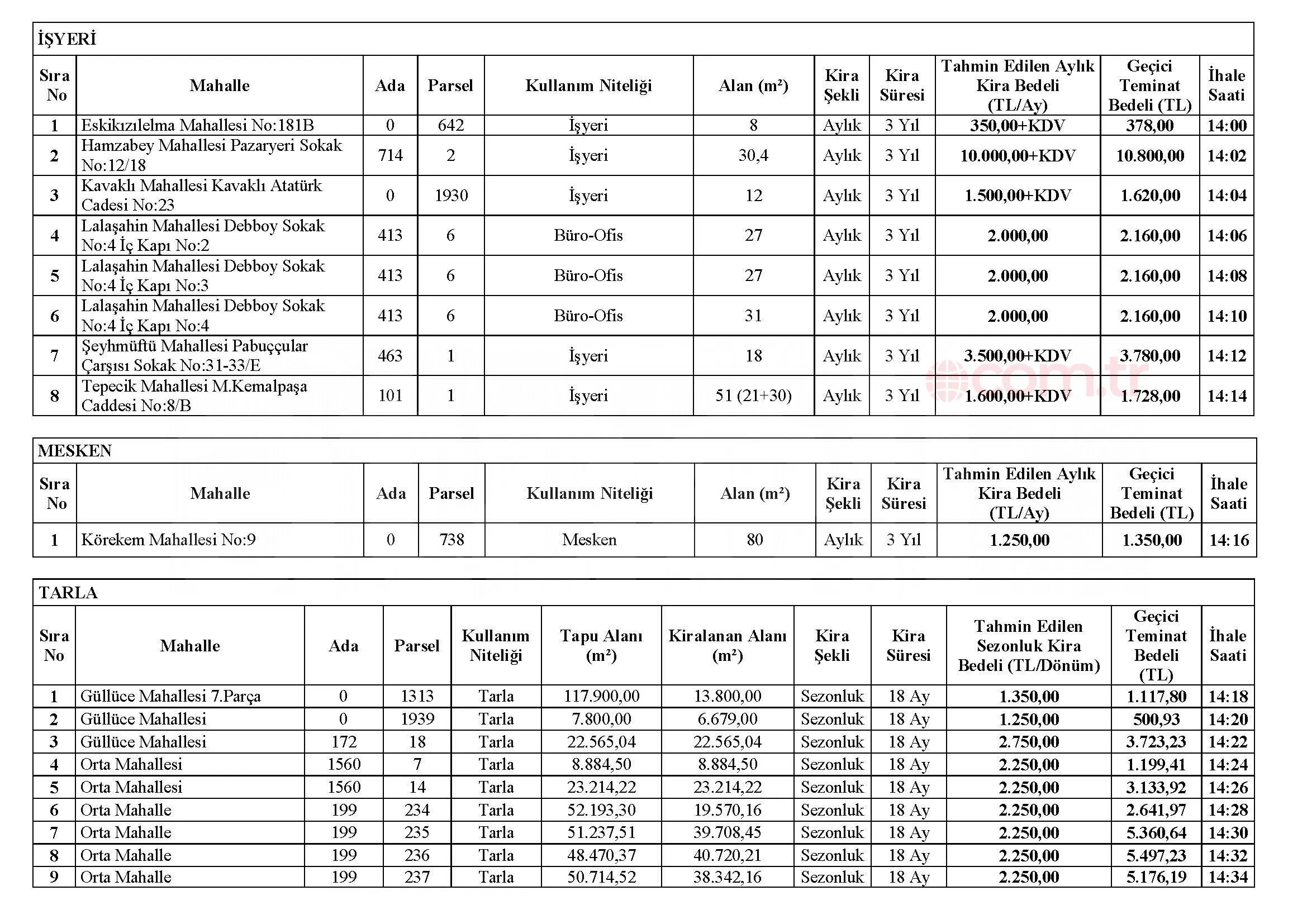 17 Şubat’ta gerçekleşecek Açık Teklif Usulü Kiralama İhalesi ile ilgili bilgiler: