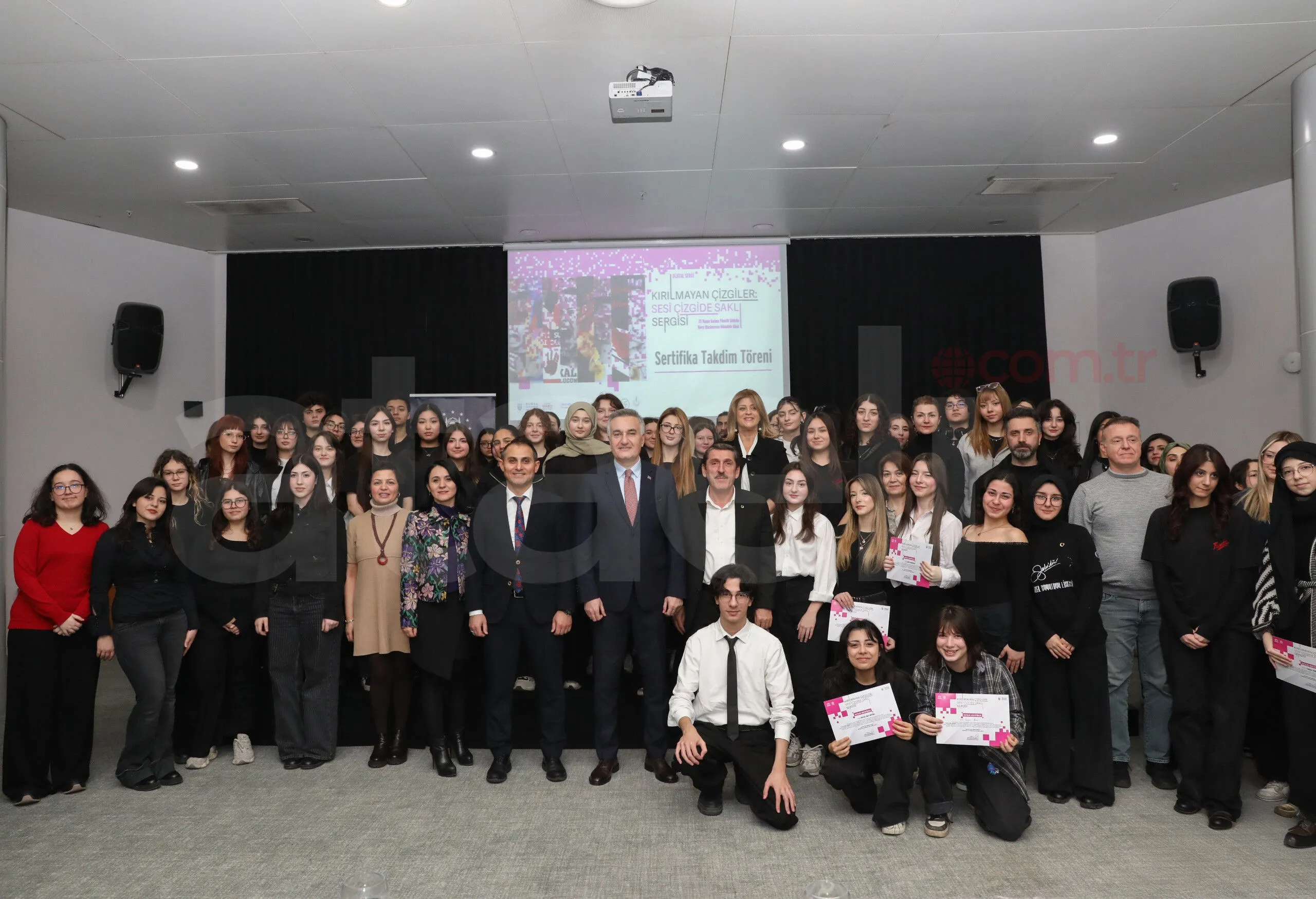 Bursa Büyükşehir Belediyesi tarafından düzenlenen ‘Kırılmayan Çizgiler: Sesi Çizgide Saklı’ dijital afiş sergisine katkı sunan öğrencilere sertifikaları verildi.